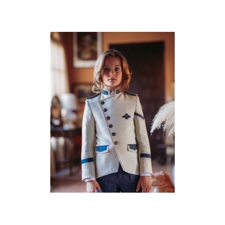 Traje de Comunión de Almirante en tono arena combinado con azul marino.