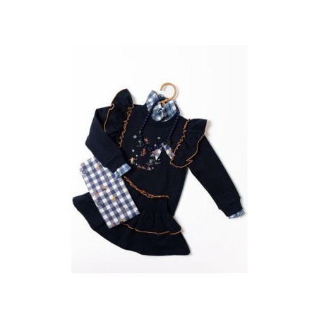 - Sudadera de algodón en color azul marino con niños eskiando y volantitos. - Hay tambien sudadera para niño si te gusta llevarlos combinados. - Hecho en España.